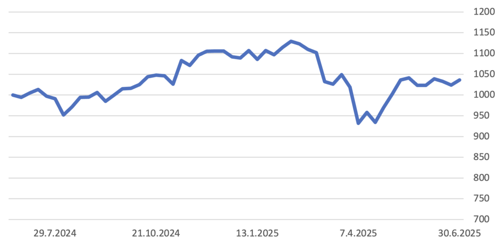 Jak bude vypadat druhá část roku 2025? Otazníky nad tarify nebyly dosud vyřešeny. Myslíme si, že americká vláda bude i nadále způsobovat nestabilitu. Co je ale pro nás důležité: poklesy jsou investiční příležitostí, takže každý, kdo nakoupil během poklesů, se nyní těší pěknému zhodnocení. Teoretická úvaha; pokud 7. dubna 2025 se někomu podařilo nakoupit index SP500 přesně na dně „snížení tarifu“; tento vklad by již k dnešnímu dni zhodnotil o více než 20 % (v USD).